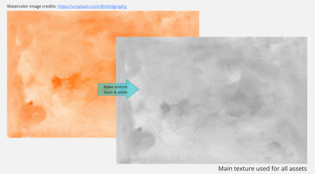 - Started with a royalty free watercolor texture. Edited it into black and white version.