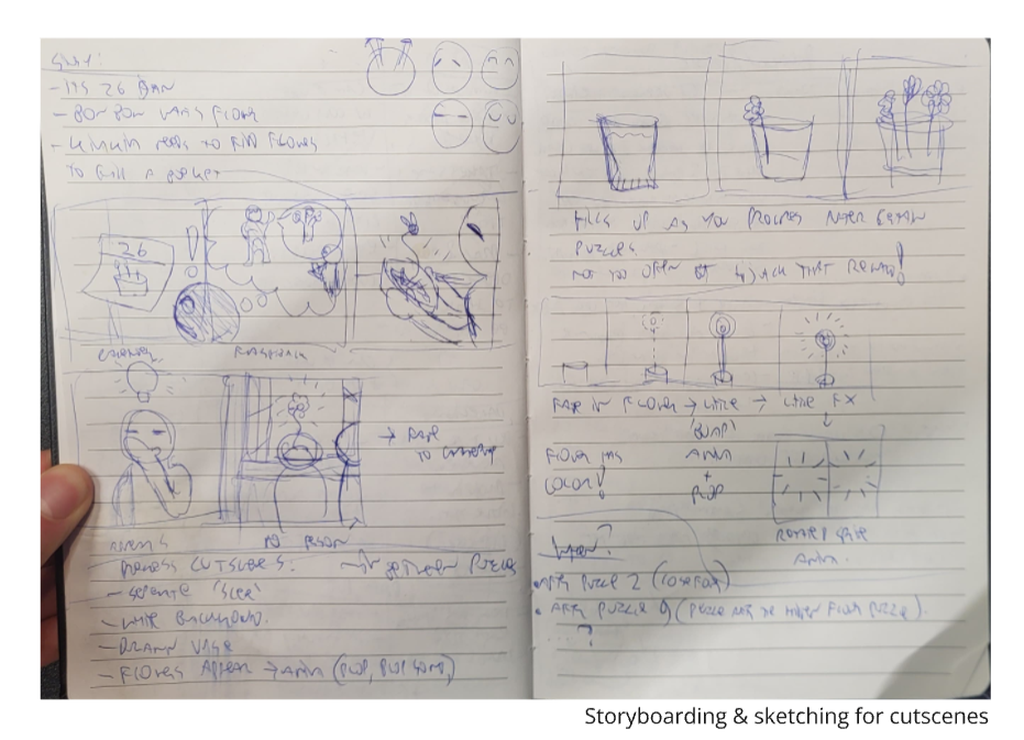 The cutscenes had to be simple & fast to make, look appealing & consistent with style.